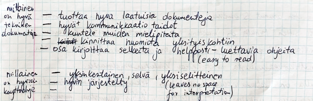 But what about the actual interview? I did not feel confident enough to carry out a job interview in Finnish. At that time, I could barely manage simple daily communication, let alone the technical details of documentation technologies. I didn’t see any other option, so I prepared in the only way I saw possible. I listed the most common job interview questions and memorized answers to them in Finnish. We practiced a lot with my husband. He asked me the same questions in different ways, and I tried to answer and memorize key vocabulary. “Tulen hyvin toimeen ihmisten kanssa”, ”oma-aloitteinen ja täsmällinen persoona” or ”en pelkää haasteita” were only a few of the expressions that made it to my list.